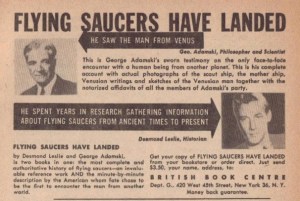 This time around, we’re looking at the contactees–those who thought they had physical or psychic contact with human-appearing space aliens. Their messages were often more earthly than cosmic and they’re a lot of fun. Learn all about George Adamski and tune in next time when we’ll cover some more classic contacteeism.